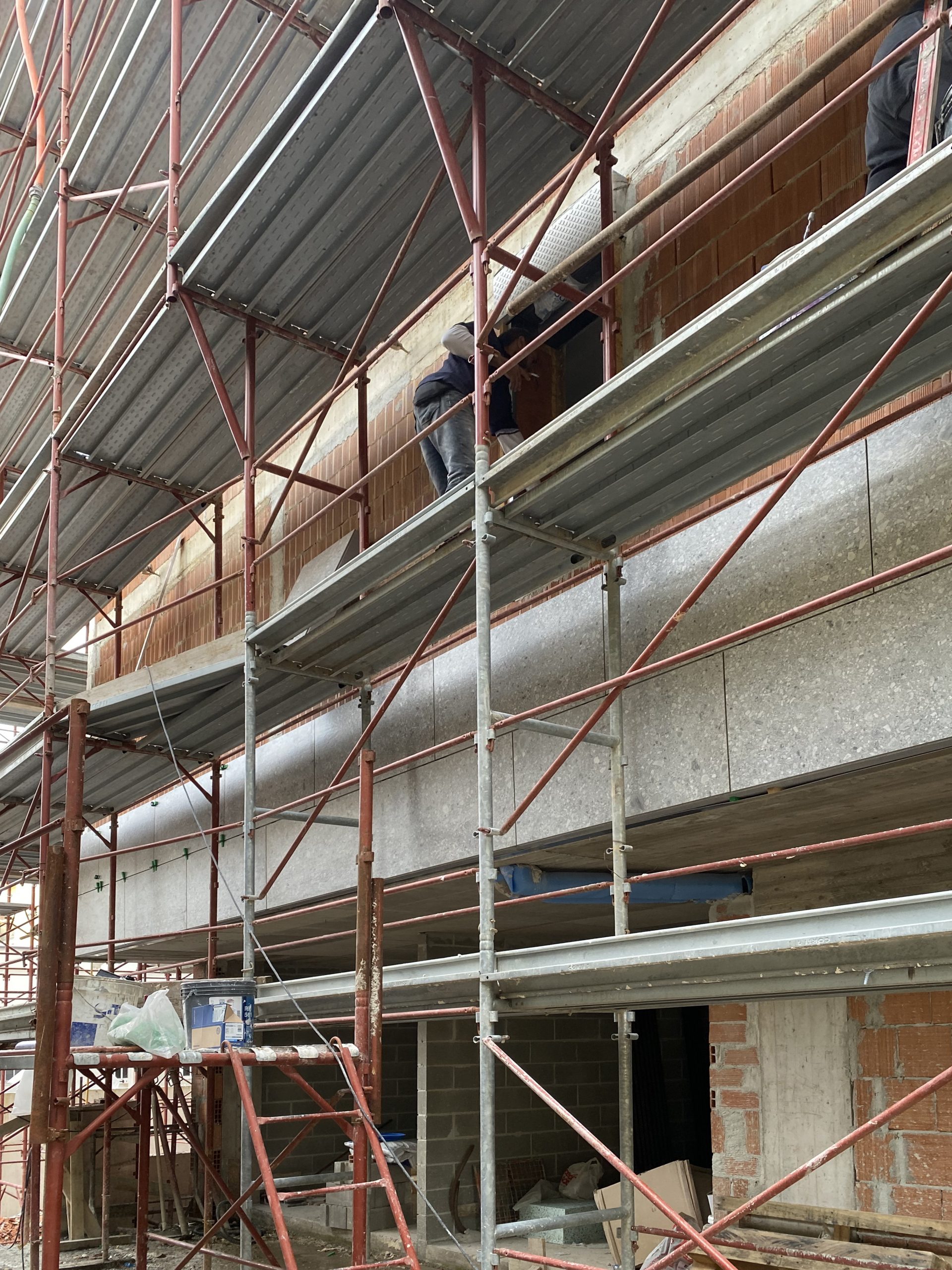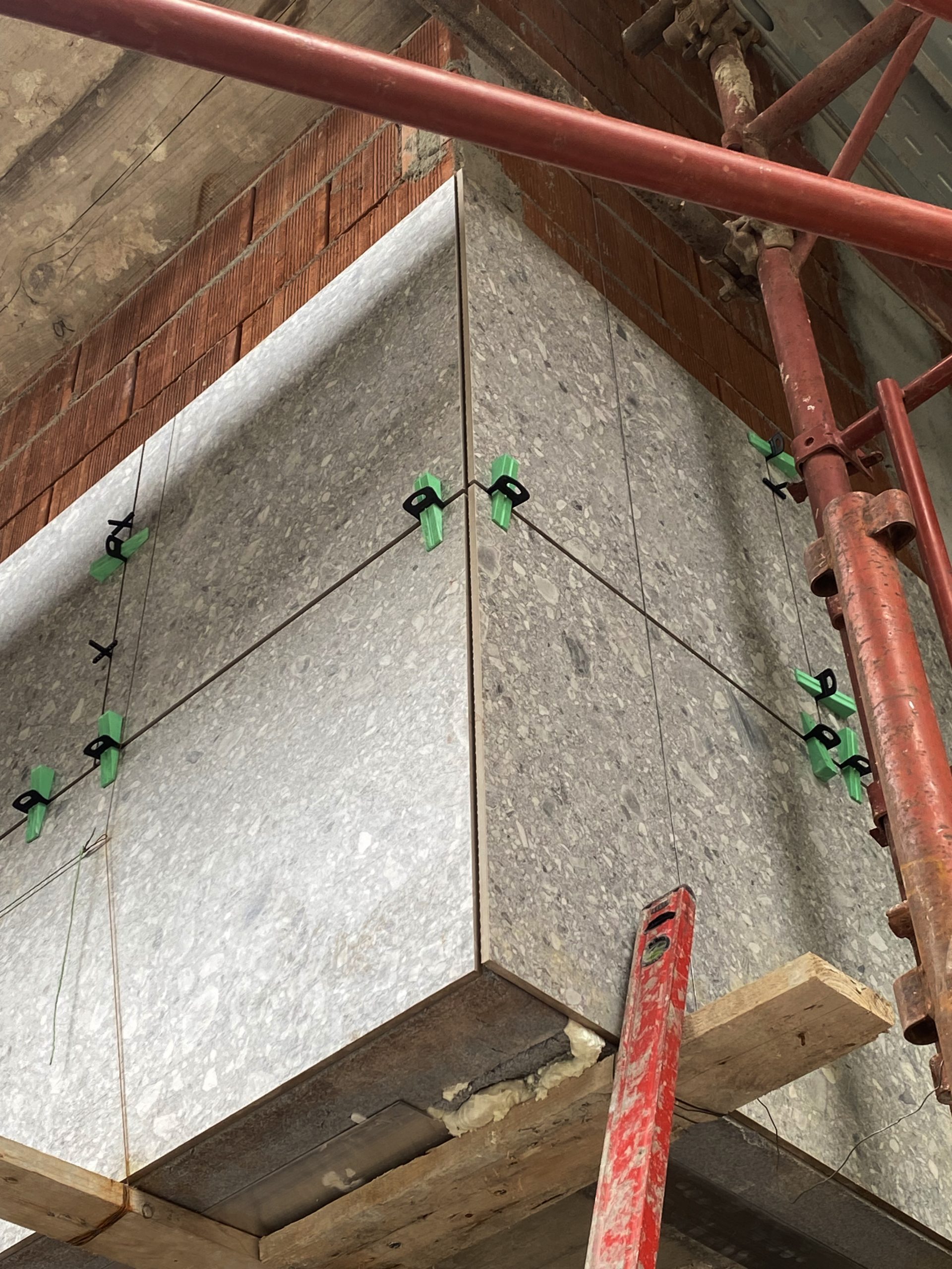 • Estetica materica: grazie alla versatilità di ISOCLIP, è stato possibile utilizzare lastre in gres porcellanato di grande formato che riproducono fedelmente il Ceppo di Gré, la pietra simbolo dell’architettura lombarda. Questo ha permesso di mantenere quel legame con la tradizione locale richiesto dal progetto, offrendo però la resistenza, l’inalterabilità e la facilità di manutenzione tipiche della ceramica tecnica.