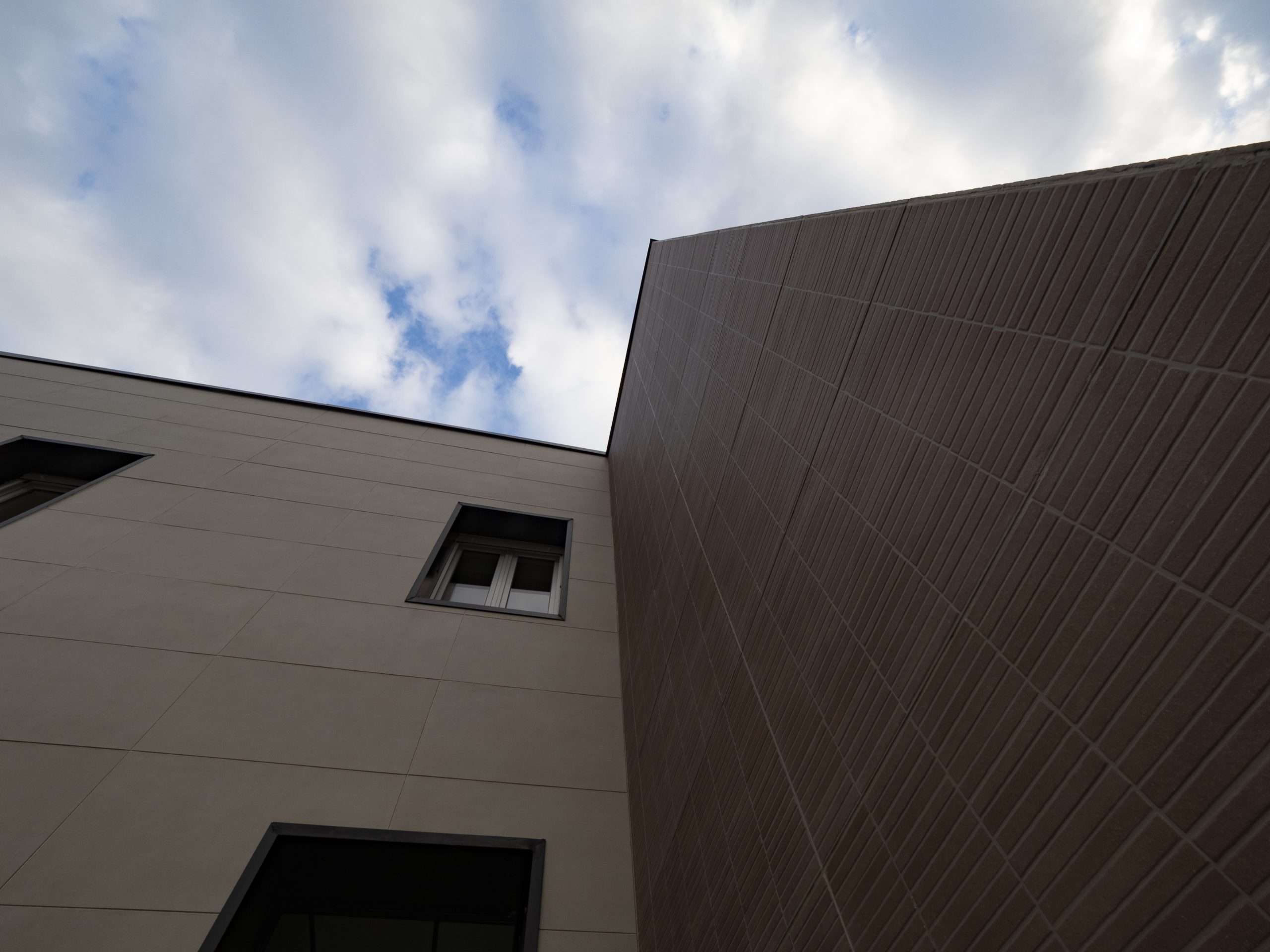 L’aspetto più evidente dell’intervento è la totale metamorfosi estetica. La vecchia facciata deteriorata è stata nascosta e protetta dal nuovo rivestimento, trasformando l’edificio in un volume moderno e dinamico.
